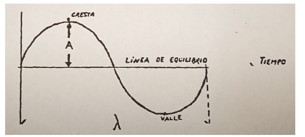Comprimento de onda (λ): distância existente entre dois pontos contíguos equivalentes do ciclo ondulatório (por conveniência, entre duas cristas consecutivas).