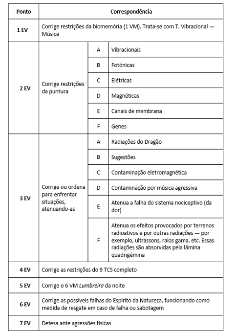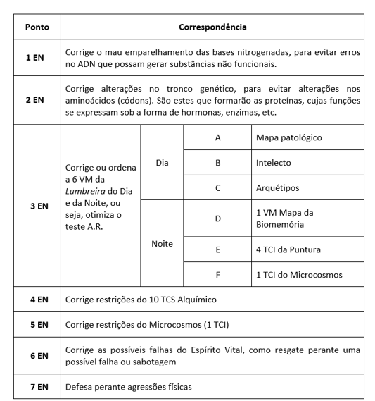 Estas medidas são formulações metafóricas que fazem referência a um estado ótimo do espectro da energia fotónica, e que é vital para restabelecer a carga energética dos átomos do organismo. Este sistema é regido pelo Sistema Energético da Puntura. Trata-se aqui de estabelecer, na biomemória destas células-tronco neurais (estaminais), o padrão do espectro energético capaz de captar, através do microcosmo talâmico, energia fotónica do macrocosmos (luz solar) com estas características energéticas.